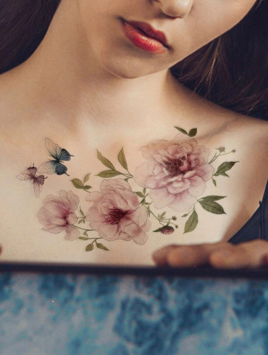Buy Rose Temporary Tattoo Set Rose Tattoo For Womans Chest Online In India Etsy